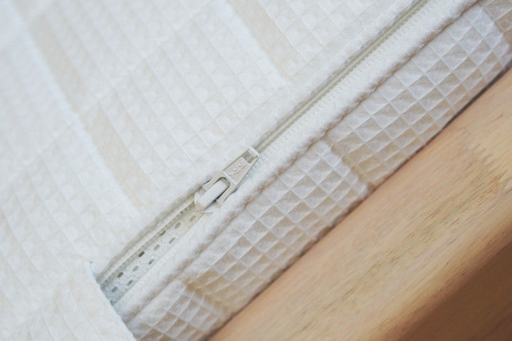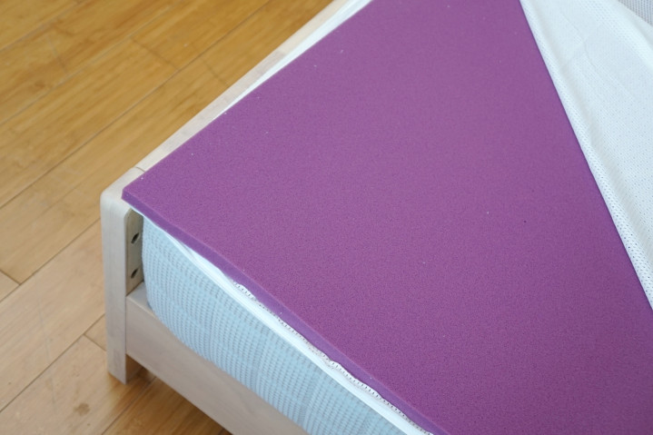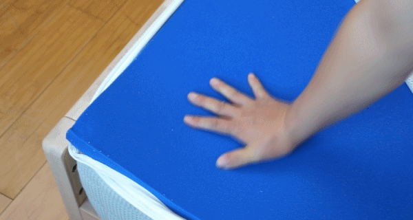2.5cm生物基小蓝垫的表面硬度明显就硬了很多,用手按下去明显能感受到很好的支撑力。对于小孩子或本身喜欢睡“硬”床的用户来说,2.5cm生物基小蓝垫的加入,就完美解决了传统弹簧床垫普遍偏软的问题。