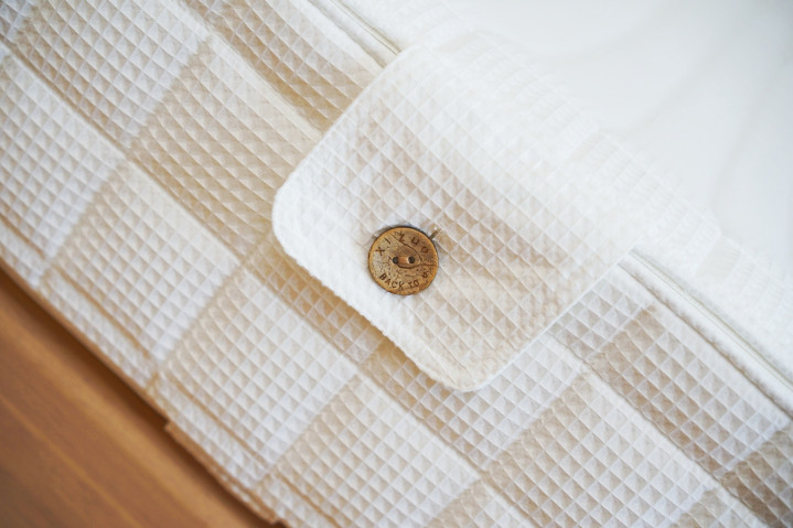 侧面的钮扣,打开它,无需翻转床垫,就能很方便完成贴合护脊/支撑护脊两种睡感的切换,相比传统床垫的翻面设计,仅需一个人就能完成睡感切换的栖作坚果3代明显更加科学。